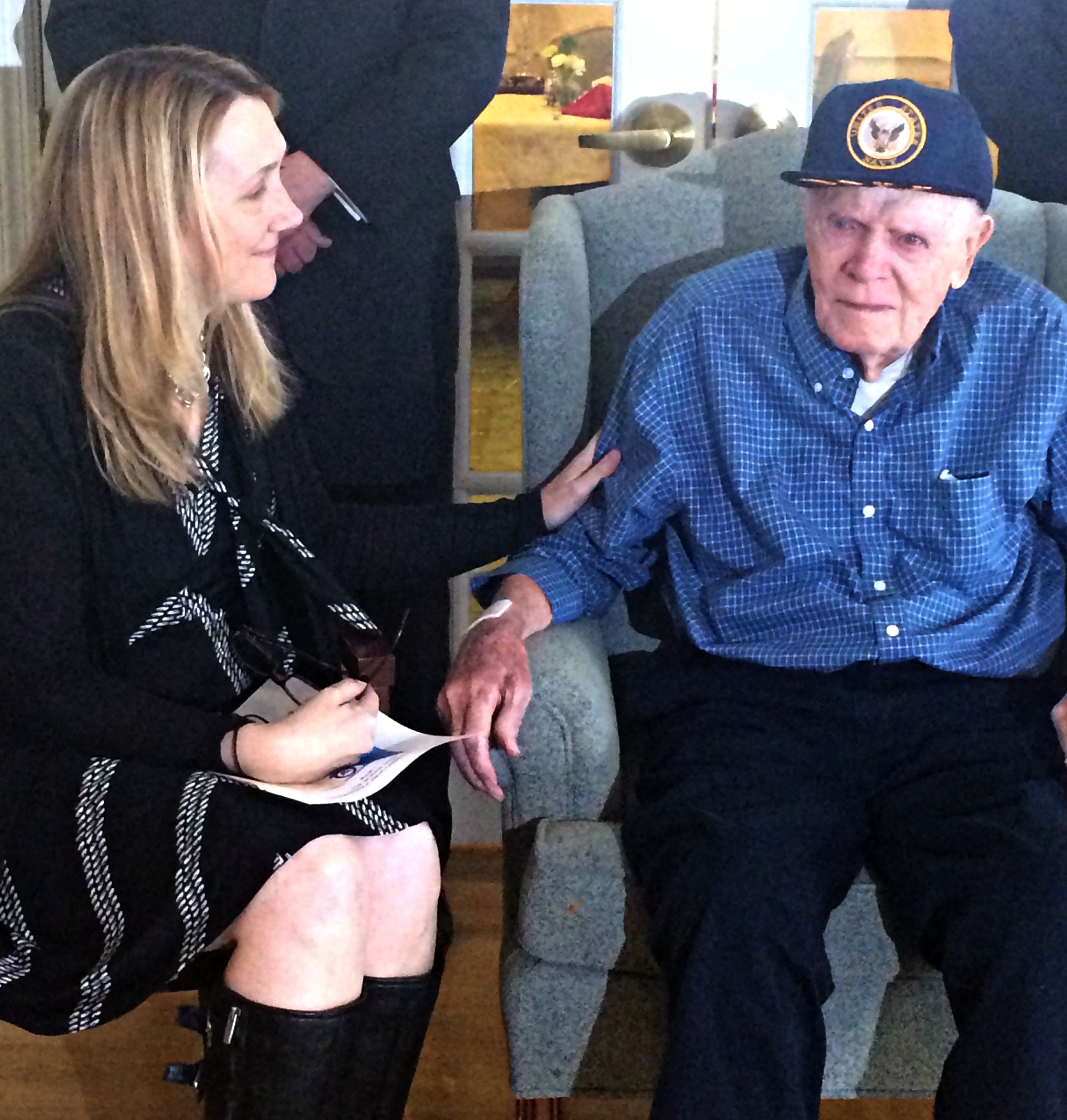 I breathed a sigh of relief when he made it to the room and was transferred into a wingback chair, flanked by Navy veterans. But did he know why he was here? Did he realize this military celebration was for him?